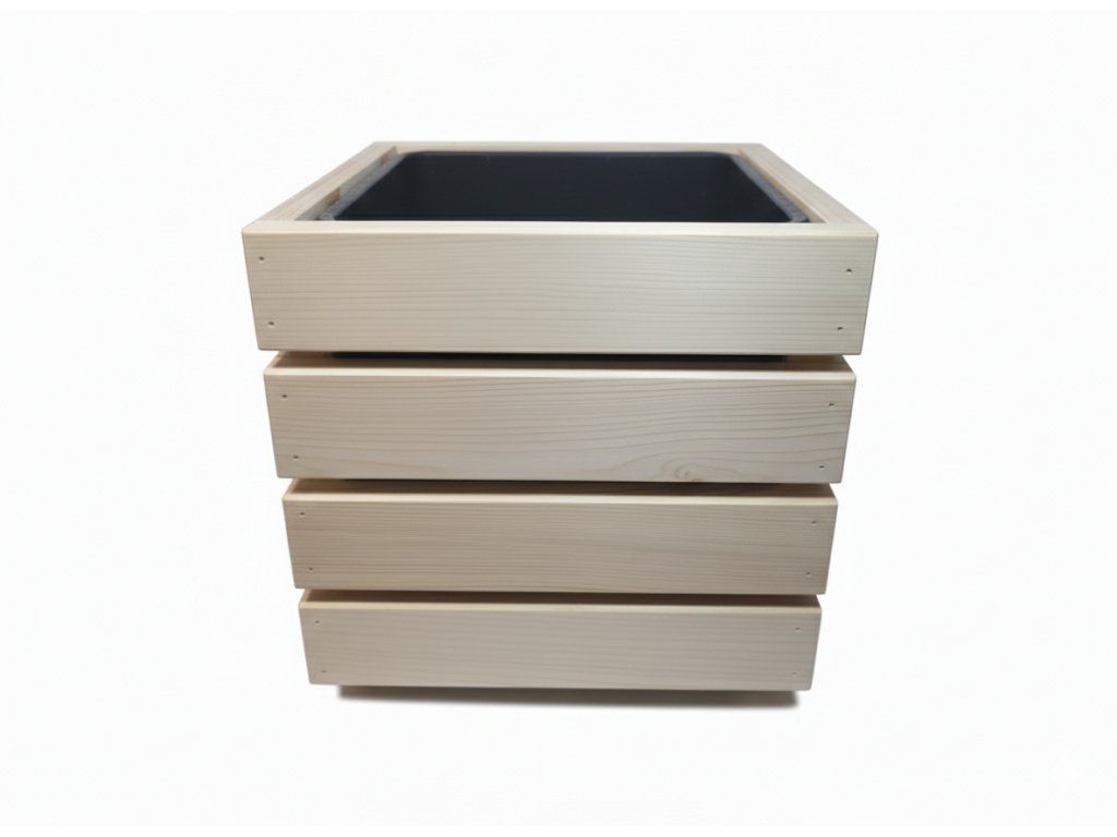 Výhodný set. Kompletní prémiový dřevěný květináč složený ze dvou modulárních polovin (2× CUBRA Half Block) a plastové vložky (CUBRA Liner). Elegantní design, vysoká odolnost, připraveno k použití.